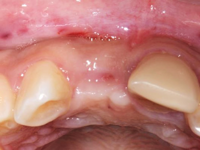 Resorption of the facial crestal bone may result in recession of the mucosa.