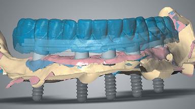 This case describes a partial digital workflow in the treatment of a patient with a terminal dentition. It features virtual planning of static computer-aided implant surgery (s-CAIS) and CAD/CAM interim prostheses.