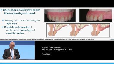 Dental implants are designed to provide support, stability, and retention for dental prostheses. In addition, implants have evolved to enable optimal esthetic and functional outcomes for patients seeking dental rehabilitation for a variety of indications. This lecture focuses on optimizing prosthodontic outcomes for patients via a systematic and evidence-based team approach to treatment. This includes contemporary treatment planning with an emphasis on communication of ideal implant placement; choice of implants, components, and restorative biomaterials to minimize complications; and prosthesis design and maintenance options to enhance longevity.