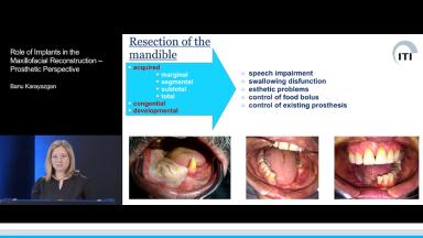 Maxillofacial prosthetics is the “art and science of functional and esthetic reconstruction of congenital or acquired intraoral and extraoral defects.” This lecture outlines the surgical and prosthetic challenges of treating maxillary, mandibular, and extraoral or facial defects. Topics discussed include the use of splinted implants to improve the retention of obturators in the treatment of maxillary defects; treatment of marginal vs. segmental defects of the mandible; the importance of implant placement for the esthetic outcome of extraoral reconstructions, whether auricular, nasal, orbital, or midfacial. Evidence on long-term success of extraoral reconstructions is given. This presentation is enhanced with excellent photos and patient videos.
