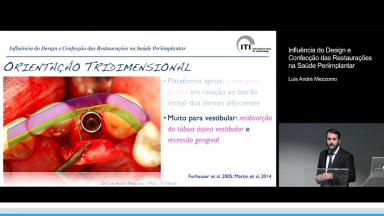 Esta aula abordará a influência do desenho e confecções das restaurações sobre a saúde peri-implantar, é apresentado um protocolo para confecção de uma restauração estética bem sucedida, com início a partir do planejamento para instalação do implante e se estende até a fase de finalização da restauração definitiva. São abordados vários aspectos de importância para o correto planejamento protético como: biotipo gengival, enceramento diagnóstico, tipo de prótese, guia cirúrgico, orientação tridimensional, tipo do implante. No decorrer da aula são apresentados vários aspectos que precisam ser considerados antes e após a instalação do implante para que se obtenha sucesso estético e funcional. O Dr. Mezzomo apresentará um excelente material embasado na literatura e com aplicação clínica e conclui que a fase das próteses provisórias deve ser vista como uma fase de extrema importância para o sucesso a longo prazo dos tratamentos com implantes dentários.