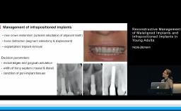 This lecture reviews in detail the various defects encountered in clinical practice that may need regenerative procedures for hard and soft tissue augmentation. The presentation is supported with excellent visual aids that illustrate how these defects can be reconstructed for prosthodontically driven implant placement. It also addresses how to prevent complications in regenerative and reconstruction procedures as well as the predominant treatment options to manage these complications. Clinical outcomes are supported by reference to several studies and clinical recommendations from the 4th ITI Consensus Conference.