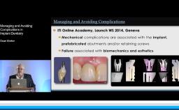 In this lecture risk factors for implant failure are reviewed with an emphasis on the importance of recognizing these factors prior to treatment by means of risk assessment tools such as the SAC. With aid of numerous clinical cases the speaker explains his interdisciplinary approach to managing implant complications. Clinical cases include an esthetic failure due to a compromised 3D implant position; lack of keratinized gingiva requiring a free gingival graft; and the treatment of titanium-tattooed gingiva. The lecture concludes with discussion of peri-implantitis caused by cement excess. The lecturer demonstrates the advantages and indications for the use of the Perioscope device for the examination and visualization of cement excess. Recommendations for a post-cementation protocol for routine use are shared.