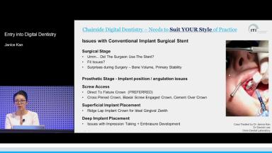The speaker also discusses the use, advantages and disadvantages of digital dentistry and provides an overview of her experience with digital scanning from diagnostic treatment planning to impressions, followed by prosthesis construction to implant treatment. She concludes with a comparison of digital vs. analog labor costs and a rundown of a single-unit implant crown.