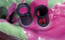 A 28-year-old female patient presented to our clinic in 2000 with failing teeth 11 and 21. She reported no general medical conditions that would prevent routine restorative and surgical procedures. She was experiencing no pain, but reported that the teeth were mobile and would like to replace them with something more permanent. Upon an extraoral and intraoral clinical examination and radiographic review, teeth 11 and 21 exhibited external and internal resorption, class II mobility, and periapical pathology. Given their poor prognosis for long-term survival, it was determined that they should be extracted. Several treatment options were considered, ranging from a conventional fixed dental prosthesis to single (cantilevered restoration) or multiple dental implants. Considering the patient’s desire to have individual teeth and the available architecture of the hard and soft tissue, it was determined that adjacent implantsupported restorations should be explored.