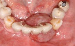 Surgical treatment of a 67-year-old male patient exhibiting an extended edentulous space in the anterior maxilla after the removal of three hopeless incisor teeth.