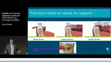 Cette présentation traite de la fiabilité de la chirurgie implantaire par CAD-CAM et de son utilisation pour la mise en charge immédiate. Les évolutions technologiques permettent d’aller de plus en plus loin dans la chaine du numérique appliquée en implantologie. Cependant, nous savons à l’heure actuelle qu’il existe des imprécisions en chirurgie implantaire guidée. Dr Chrabieh expose les différents paramètres d’erreurs et dans quelle mesure ils peuvent influencer le résultat final. Enfin il détaille son protocole d’étude en cours d’élaboration afin de comparer deux types de design implantaires utilisés en mise en charge immédiate selon le protocole de chirurgie implantaire guidée en flux complet.
