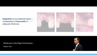 This lecture summarizes the morphological changes that follow tooth extraction and gives hints on how to minimize atrophy of the bony walls using atraumatic techniques and selected filling materials. Dr. Chen provides research evidence for various ridge preservation techniques and shares the characteristics of an ideal filling material. He also presents the clinical indications for each technique, including post-extraction ridge maintenance, immediate (Type 1) implant placement, and ridge reconstruction.