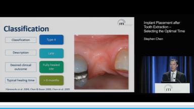 This lecture provides clinical recommendations that are consistent with the philosophy of providing a predictable long-term outcome with minimal risk to the patient. The classifications of timing of implant placement after extraction (immediately, early with soft tissue healing, early with partial bony healing, and late) are based on desired clinical outcomes. Clinical recommendations of the ITI are given, including exclusion criteria. The bulk of this presentation consists of selection criteria for each of these classifications, illustrated with clearly documented clinical cases. Although the emphasis of this lecture is implant placement in the esthetic zone, non-esthetic cases are also discussed.