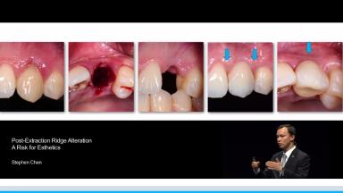 This lecture addresses the dimensional alterations to the soft and hard tissues that take place following tooth extraction in the single-tooth site. Excellent visual aids accompany the lecture as Dr. Chen details the healing of the extraction socket and its role in implant therapy. Attention is placed on immediate (Type 1) and early implant placement (Types 2 & 3) and its influence on long-term esthetic outcomes. Clinical outcomes are supported by reference to several studies. The lecture concludes with clinical recommendations from the 5th ITI Consensus Conference.